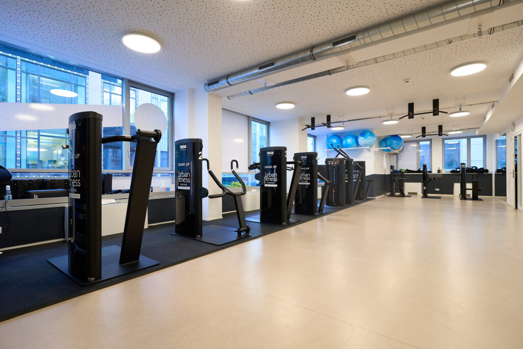 Durch effiziente Anordnung der multifunktionalen Stand Up! Geräte wird der Raum optimal genutzt