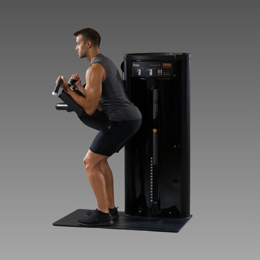 Trainiert die Arm- und Rumpfstabilität durch stehende Bizepscurls
