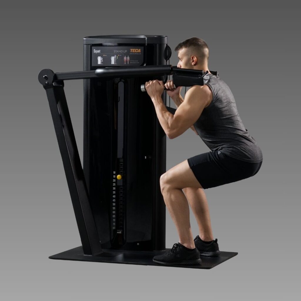 Ermöglicht geführte Kniebeugen im Stehen, verbessert Beinmuskulatur und fördert die Körperhaltung